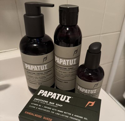 - This PAPATUI™ Men's Shower Pack showcases our luxury Sandalwood Suede fragrance.