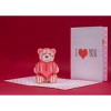 - Design Theme: Intricate and detailed 3D popup of a teddy bear holding a red heart.