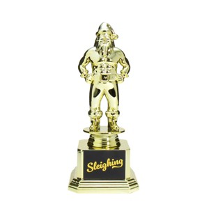 Celebrate life's small victories with this Sleighing Santa Trophy. Show a friend, family member, or co-worker that you really care about them with this perfect trophy. A perfect gift for any occasion and includes an 8in high trophy with unweighted base.