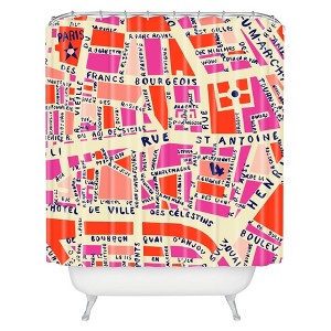 Paris Map Shower Curtain Pink - Deny Designs: Bathroom Decor, Typography Pattern, Microfiber Fabric