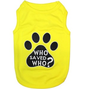 Parisian Pet 'Who Saved Who' Heartwarming Dog Shirt – Funny Slogan Pet T-Shirt for Dogs & Cats, Light Yellow - 1 of 4