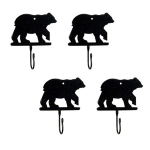 Update your lodge entryway or cabin bathroom decor with these rustic black decorative hooks. This wall mount organizer features a walking bear silhouette in a textured black finish. These stylish and functional hangers are great for holding your key ring, hat, coat, or even a towel in the kitchen or bathroom. Great for cabins and rustic home decor.