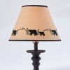Set a dramatic tone with this charming rustic lamp shade. Crafted using 100% cotton fabric over an opaque backing, hand trimmed and sewn. Feature attraction on this shade is the detailed embroidered design highlighted with black bear silhouettes, trees and mountain accents. Ideal accent piece for a variety of interior styles including country, farmhouse, or lodge decor.