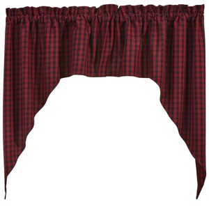 Blending classic with cozy! This pair of patterned swag valance curtains have a traditional plaid design that elegantly incorporates a country color palette in rustic red and black hues. Features unlined fabric and natural ruffling with delicately draped sides to offer a timeless look without having to redecorate an entire room. Can be used by itself or paired with your favorite tier or curtain panel for a unique and dynamic wall display. This window treatment can be used time and time again in your favorite farmhouse, country, fall, lodge, cabin, and primitive room decor.