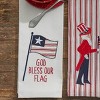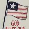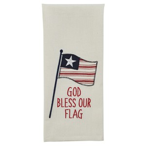 Add this decorative dishtowel to your Americana kitchen decor for a special patriotic touch that will contribute to a welcoming home. Its intricately stitched words, 'God bless our flag,' displays the love for our country with its classic red and blue hues. This embroidered dishtowel will get softer and more absorbent with each use.