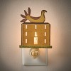 Elevate your country room decor with our rustic night light, blending useful ambient lighting with rural farm inspired charm. This metal nightlight features a yellow two-story farm house with window inspired cutouts and a bird to beautifully illuminate any room in the house. Simply position within the desired outlet and flip the manual switch to activate a soft glow in your antique farmhouse or primitive home decor. A 5-Watt bulb is included with the decorative plug-in light to provide a quick and easy installation for cozy accent lighting to any hallway, bedroom, entryway, or bathroom space.