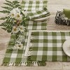Complete your festive decor with this sage and cream buffalo check table runner. A table runner with a buffalo check ground is a perfect covering for everyday use or formal setting. This table runner will add visual appeal to decor while protecting surfaces from daily wear and tear and can be used on an entryway, dining, or kitchen table for a touch of textured charm.