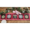 Bring the spirit of Christmas to your holiday table decor with the addition of this festive patterned table runner. This decorative dinner mat brings a cozy winter feel to any meal from the delightful candy cane print with stripe accents, made complete with a green bow and stunning snowflake border in a bold red and white color palette. Durably made of 100% premium cotton material that offers a festive decorative backdrop for a table centerpiece display or accent table display, bringing a vibrant addition to any seasonal dining room or living room space. The machine washable element makes after meal cleanup quick and easy for the perfect tabletop addition to utilize during holiday gatherings, yearly winter decorations, and Christmas dinner parties.
