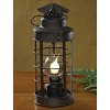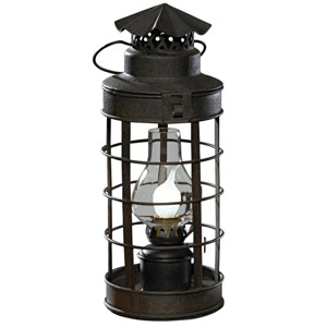 Inspired by a traditional lantern, this rustic iron lamp provides a classic approach to a bedside light, office lamp or subtle living room lighting accent. Created from a combination of the design details of two antique coach lanterns. The base features a functional opening top section that allows for easy access to change the lower bulb. Produce an inviting aura to any room in the house by adding a 6 Watt bulb, not included.