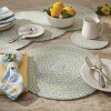 Build a backdrop with the beautiful blue of this woven table runner! The versatile design is perfect to accessorize throughout the year in any spring farmhouse, cottage, country chic, Easter decor, and more! The premium braided cotton material in a light blue and yellow circular patterned design that adds a textured flair to display on a tabletop surface as a centerpiece backdrop display or layered with other table accessories. Functional and aesthetic layout to elevate a casual or formal dinner arrangement to showcase beautiful tableware including dinner plates, cutlery, and glassware.
