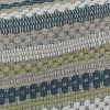 This classic stripe patterned tabletop addition will add a vibrant pop of color to your dining area. The beautiful green, blue, and cream shades on the chindi table runner creates the perfect accent piece for an everyday or seasonal aesthetic. Reuse to both protect your surfaces or dinner table from any potential dents while also providing a stylish addition to your home decor.