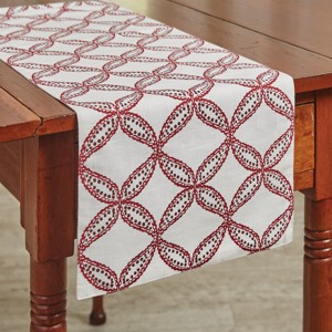 Embrace the rich colors that this Christmas inspired table runner offers. The jolly red and cream hues in the unique dot and circle ornament design will blend with a variety of room settings to reuse as a yearly seasonal dining room statement. Create an effortless classical look for an instant festive holiday transformation to your kitchen space. Provide a comforting interior home atmosphere for guests and loved ones delivered by the detailed nature of this winter tabletop set.