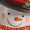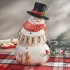 Combine function and a magical Christmas decoration in one with this unique winter holiday cookie jar. Features a festive snowman with a tall top hat and red scarf holding a 'Joyful' banner sign while surrounded by a variety of wild animals like bunnies and cardinal birds. Add a unique look to your kitchen counter or tabletop space while freshly storing your favorite cookies and treats all in one accent piece.