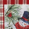 Capture the winter holiday in your seasonal kitchen decor using this red, black and white patterned dishtowel. Invite the Christmas festivities into your home with its plaid design paired by a snowman and snowy nature patch design. This multicolored cotton tea towel is a functional and stylish holiday accent statement to utilize in various home settings throughout the season or as a thoughtful gift to someone special.