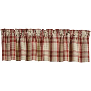 Grace your space with a touch of traditional charm! This pattern valance curtain has a classic plaid design that elegantly incorporates a country color palette in rustic red, orange, green, and beige hues. Features an unlined fabric and natural ruffling to offer a timeless look without having to redecorate an entire room that can be used by itself or paired with your favorite tier or curtain panel for a dynamic display. This window treatment can be used time and time again in your favorite farmhouse, country chic, fall, summer, and primitive room decor.