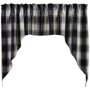 Blending classic with cozy! This pair of patterned swag valance curtains have a traditional plaid design that elegantly incorporates a country color palette in rustic black, brown, and white hues. Features unlined fabric and natural ruffling with delicately draped sides to offer a timeless look without having to redecorate an entire room. Can be used by itself or paired with your favorite tier or curtain panel for a unique and dynamic wall display. This window treatment can be used time and time again in your favorite farmhouse, country, fall, lodge, cabin, and primitive room decor.