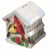Capture the calm and serene charm of the winter season with this cozy Christmas salt and pepper shaker set of two! These holiday seasoning shakers feature two cardinal birds nestled on the entrance of a snow-covered birdhouse. The tabletop organizer bundle completes Christmas table decor and winter kitchen countertop spaces by adding a classic country touch. Simply add the salt and pepper seasoning to each container to utilize it time and time again. Crafted from durable dolomite construction, these herb shakers are ideal for daily use or special occasions that bring a touch of elegance and convenience to your festive meal seasoning needs.