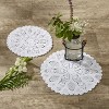 Decorate your counter or table throughout the year with this classic lace accessory. Brighten the surrounding space with these hand-crafted accent mats in a timeless white, floral design perfect for daily or seasonal reuse. Features two traditional woven mats that serve as a stylish touch and protective barrier against stains or marks to help keep the desired surface in good condition.