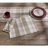 Casual yet elegant, this muted plaid in neutral hues is eye catching and pretty. A perfect covering for everyday use or formal setting. This table runner will add visual appeal to decor while protecting surfaces from daily wear and tear and can be used on an entryway, dining, or kitchen table for a touch of country charm. The table runner features a classic plaid pattern, characterized by thin red lines that add a pop of color against the off-white background. The red lines are precisely spaced and evenly distributed, creating a balanced and harmonious design. The plaid pattern is timeless and versatile, making it suitable for both traditional and modern home decor settings.