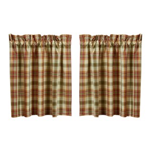 The plaid pattern provides a delicate design detail for primitive, traditional, Amish, Americana, lodge, or country decor. These classic green, yellow, red, and off-white plaid tiers will remain versatile and relevant for years to come. The rustic colorway and versatile pattern makes these great for adding a fresh and casual feel without overwhelming your home space. Features an unlined fabric and natural ruffling to offer a timeless look without having to redecorate an entire room that can be used by itself or paired with your favorite valance curtain for a dynamic display.