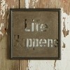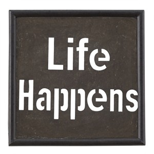 Combining humor with inspiration, this square Life Happens sign is perfect to add in any room decor or the perfect funny gift to someone special. The decorative metal galvanized sign is easy to hang on a wall or display along a mantel space, adding a touch of subtle farmhouse style.