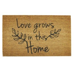 Simplistic yet lovely, this nature doormat is the perfect for addition within everyday porch decor or a lovely year-round entryway accent. Guests and loved ones will be greeted with a fun, casual doormat that says 'Love grows in this home' with a blooming plant design. Easily keep dirt out of your interior home setting with the durable material this welcome mat is made of.