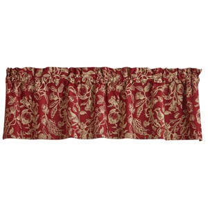 A rich red ground is embellished with an exotic floral print. This valance creates a warm and bold statement for your window, and you will quickly fall in love with the classic appeal it adds to your home decor with its timeless Williamsburg design. The natural ruffling of the fabric at the top adds a pretty, country-farmhouse look without having to redecorate an entire room.
