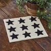 This decorative tabletop mat features star shapes, well complemented by rustic hues that will remain timeless for years to come. Nine black applique stars on an off white ground provides a striking accent piece, perfect for displaying a candle or other decorative items. Place it in a variety of room settings to add an effortless primitive touch without having to completely redecorate. Creates a stylish display as a decorative base to be layered with candles, flower vases, lamps, table centerpiece arrangements, seasonal accents, and more.