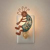 Add soothing light to dark spaces with this southwestern style night light. During daylight hours the light covers an otherwise unattractive outlet, at night it softly illuminates desired areas with a warm glow that is ideal for entryway, stairs, kitchen, or bathroom. A 5-Watt bulb is included, and the item is ready to use.