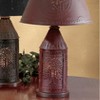 This is a lamp replica of a New England punched tin original with the adaptation of a willow tree design. This red lantern is one that was said to be carried by Paul Revere the night of his famous ride in 1775. The tabletop lamp features a three-way switch so that you can select and change the level of brightness as desired, and a night light that can be on in addition to the lamp or as an alternative. A beautiful and timeless addition to home decor.