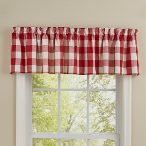 - Measurements: Includes 1 country styled valance curtain that measures 72 inches by 14 inches for a rustic window treatment accent in a kitchen, dining area, bathroom, and more! Features the ever popular buffalo check colorway in red and cream.