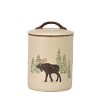 These canisters feature a bear and moose done in a Sgraffito design with brushed edge details. In Italian, Sgraffito translates "to scratch", this decorative pottery technique is when a tool is used to create texture and patterns in the clay. This artistic interpretation creates a versatile look sure to please lodge lovers. Made of durable stoneware, these wildlife canisters are sturdy and dishwasher safe.