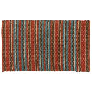 Versatile and vibrant, this chindi rag rug will elevate the surrounding space with rich colors and a classic pattern. Constructed from hand loomed and hand dyed cotton rags for a long-lasting and durable flooring accent perfect to enhance any living space, providing an inviting path for guests and loved ones throughout the year. The versatile stripe design combines with the rustic color palette of orange, teal, cream, and brown hues for a unique flooring accent that will add interest and dimension to any home decor.