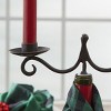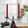 Wrought iron is hand forged to create this set of two stunning antique inspired bottle toppers that each feature two taper candle holder slots. Create a bold statement piece for your table setting using an old bottle, transforming it into a beautiful centerpiece decoration. Provides a unique element perfect to use during a romantic date night, holiday get together, or party occasion. Rubber stopper at the base for easy placement into the top of glass bottle. Perfect for your farmhouse or country home decor.