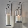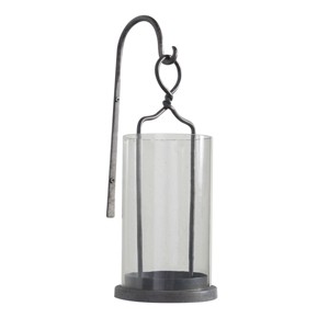 Elegant and simplistic, this farmhouse hanging candle holder introduces a vintage statement with timeless beauty in a versatile black finish perfect to utilize in room decor throughout the year. Mountable on a wall with two included screws featuring a long pole with a curved hook at the end and a rustic gray galvanized finish, allowing this tall glass hurricane lantern to be easily removed when replacing the pillar candle or for wax cleanup. This country inspired decorative wall accent brings light to the surrounding area with function and aesthetics in mind.