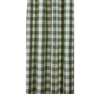 For classic country appeal, dress your shower with this gorgeous cream and sage green buffalo check shower curtain. This stylish curtain is made from thick, high-quality cotton and is generously sized so that it will fall into elegant folds. The header features 12 buttonholes and coordinating textile assortments are available, including window treatments to complete your bathroom decor.