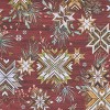 Highlight the holiday spirit with this seasonal staple! This patterned table runner features an allover print design of detailed geometric snowflakes against a rustic red wooden printed ground. Soft and absorbent to the touch, this reusable tabletop topper is constructed of premium cotton material with seamless stitched edges perfect for both every day and special occasion meals. Create a festive kitchen table setting this winter for Christmas holiday parties and seasonal family gatherings with this decorative dinner mat, making casual and formal meals a magical and memorable experience.