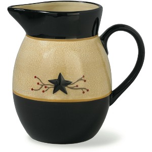 You will love the hand painted design of our Star Vine Pitcher featuring a sponge-painted and crackled wheat background with bold black accents. Best used for liquids, this pitcher holds 72 fluid ounces, but would also make a great flower vase to create a statement in the middle of your tablescape. This classic country Star Vine pattern fits nicely into any urban, farmhouse, or traditional styled home. Not only is this pitcher made of high quality dolomite, but it is also microwave and dishwasher safe!