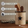 - RUSTIC PRIMITIVE STYLE – Designed for farmhouse and country kitchens, this ceramic utensil crock features a hand-painted crackled wheat background, a bold black rim, and an embossed black star.