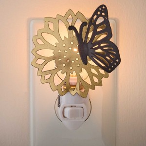 This dynamic, delicate wall display graces any room setting with beautiful botanical blooms! This decorative nightlight features a silhouette butterfly gorgeously highlighted against a gold sunflower base with intricate cutouts to softly illuminate any room in the house. Simply position within the desired outlet and flip the manual switch to activate a cozy glow in your antique farmhouse or primitive home decor. A 5-Watt bulb is included with the decorative plug-in light to provide a quick and easy installation for cozy accent lighting to any hallway, bedroom, entryway, or bathroom space.