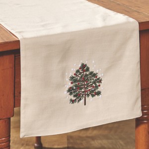 Elegantly embroidered with classic Christmas hues, this decorative table topper captures the essence of Christmas in a minimalistic manner! Intricately stitched at each end, this embroidered table runner features an antique holiday design of a fir Christmas tree with red ornaments and delicate snowflakes against a vintage beige fabric ground. Constructed of premium cotton material with seamless stitched edges, perfect for both everyday and special occasion meals. Create a festive kitchen table setting this winter for Christmas holiday parties and seasonal family gatherings with this decorative dinner mat, making casual and formal meals a magical and memorable experience.