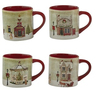 Our Vintage Hometown mug set is perfect for enjoying hot cocoa on a cold winter day, or a morning cup of coffee to wake you up in during the cold, winter holidays. This mug set features four different scenes with vintage inspired buildings and soft snow falling to the ground, designed by artist Beth Albert. Each coffee cup has a bold red, soft white, and hints of green to bring a festive touch to your tabletop home decor. It is a nostalgic treat that can be used year after year.