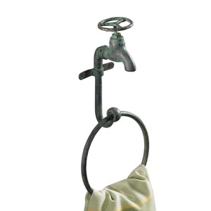 - This country farmhouse antique inspired set of 2 Water Faucet Ring Hooks are suitable for your master or guest bathrooms. They give you a place to hang your towels and accessories to keep your home clean and clutter-free!