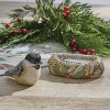 Add a subtle dash of outdoorsy charm to your winter table decor and seasonal kitchen setting with these stackable bird salt and pepper shakers. This seasoning tabletop features a chickadee bird resting gently on a festive nest that is ingeniously designed to stack the shakers atop each other, providing a compact element that occupies minimal tabletop or kitchen counter space with a visually appealing style. Crafted from durable dolomite, sculpted and hand painted, and protected by a glaze, to last for many years to come.