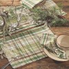 Complete with casual country charm, this traditional plaid cloth table runner introduces interest and dimension in cozy hues. This woven dinner mat features an earthy style from the green, yellow, and tan colorway. Perfect for adding a fresh and timeless feel to your year-round or seasonal home decorations. Simply place the festive dinner mat down the middle of a table setting for a quick and aesthetic centerpiece display. Utilize this kitchen tabletop textile to elevate a variety of interior styles including winter farmhouse, holiday, bohemian, primitive, country chic, lodge, cabin, and cottage table decor.