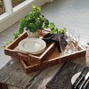 - These beautiful rustic trays are made of mango wood with bark edges. Trays have two sturdy support handles one at each side.