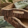 - The set of 2 Wood with Bark Edge Trays are perfect for entertaining from the kitchen to the dining room or to the great outdoors. Add your favorite pillar candles to create a unique candle holder tray or an eye-catching centerpiece for your lodge table.