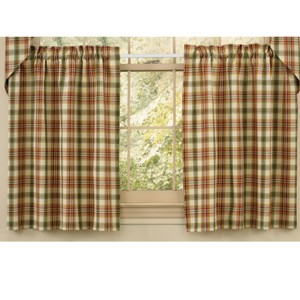 These patterned tiers are the perfect window treatment for any farmhouse home decor style or trend. The traditional paid design in spicy hues of red, green and orange hues are visually striking to add warmth to any kitchen or living room area. The rustic curtain is unlined to allow light to delicately filter though, softening the ambiance of a room or entryway. The window treatment tiers can be hung alone or combined with a coordinating valance.
