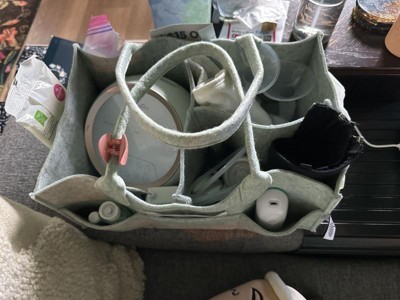 Fantastic for holding all my pump stuff and being able to carry it with me to the room baby isn’t sleeping in!! I keep it on the top of my IKEA Raskog rolling cart in the bedroom (PERFECT fit!) and take it with me out into the living room for my nighttime pump. I can’t leave my stuff in the living room because I have a kitty who likes to chew on plastic. 🙄 It easily holds my Spectra pump, pump bottles/flanges, tubes/backflow valves, pumping bra, pumping spray, nipple balm, pump part wipes, massager, nipple hydrogel pads, hand sanitizer, hair ties/clips, chapstick, leak pads, and more!