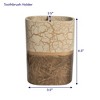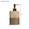The Parker bathroom accessory set adds sophistication and a touch of glamour to your bathroom decor. This modern handcrafted resin collection is luxurious, stylish, and helps keep your bathroom decor clean, fresh, and organized. Set includes: a tumbler, lotion/soap dispenser, toothbrush holder and soap dish. The Parker accessory collection is textured with a weathered beige, brown and gold finish for a subtle addition of style. Each piece is handcrafted in a durable resin. Each item is easy to wipe clean and made to last a lifetime. This ultra-luxurious collection will surely add contemporary charm to your bathroom.